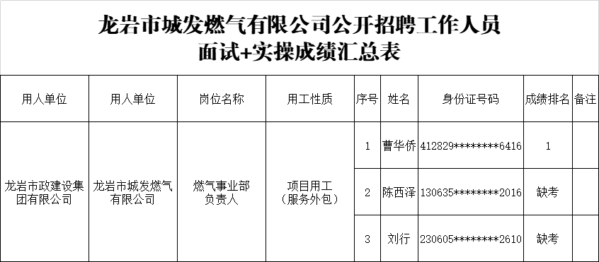 • Time:2025-05-12龍巖市政建設(shè)集團(tuán)有限公司公開(kāi)招聘工作人員面試+實(shí)操成績(jī)排名的公示