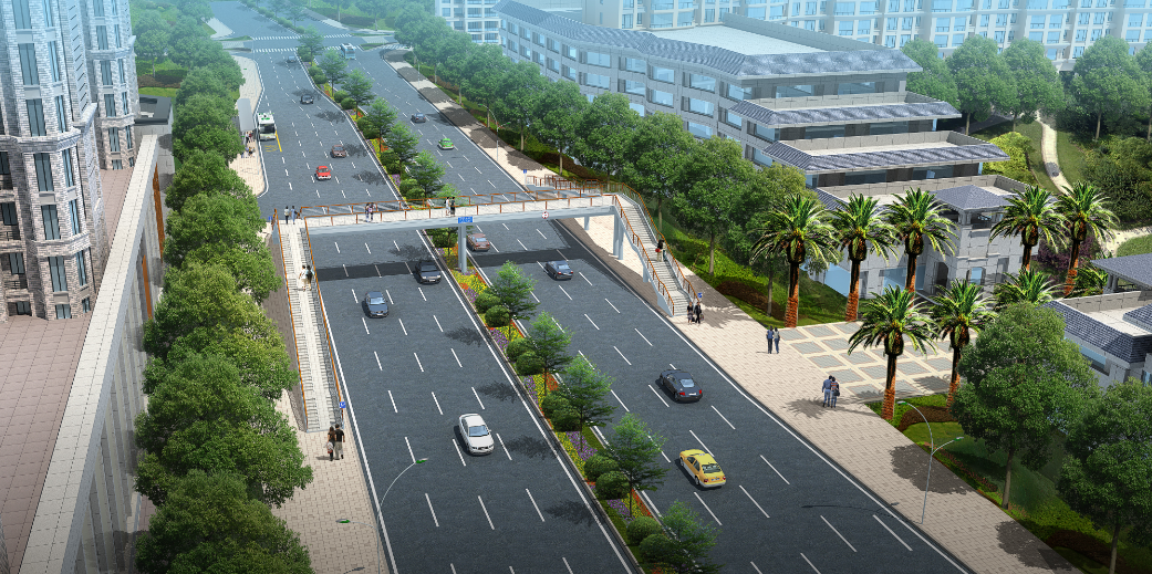 水韻華都人行天橋位于龍騰路水韻華都南側(cè),橫跨龍騰中路。橋長(zhǎng)34.4米,寬3.6米,下部結(jié)構(gòu)采用鉆孔灌注樁和擴(kuò)大基礎(chǔ),上部結(jié)構(gòu)采用鋼結(jié)構(gòu),項(xiàng)目總投資約400萬(wàn)元。項(xiàng)目于2016年4月開(kāi)工,8月底竣工。項(xiàng)目建成后,可有效保障該片區(qū)行人過(guò)街的安全,提高人們出行效率。
