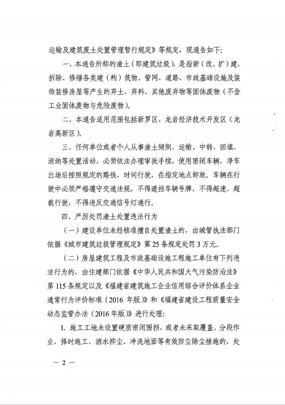 1. 龍巖市人民政府關(guān)于嚴(yán)厲打擊渣土處置違法行為的通告(通告【2017】3號)